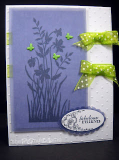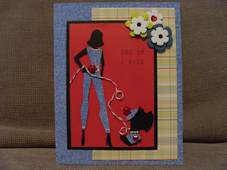 Lauren's totally adorable card using a dog embellishment, computer (close enough to digital for us) generated sentiment and denim!